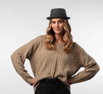 ジャズスタイルでありながらエlegantなこの非常にシックなポークパイを選んでください。トリムバンド、上向きのエッジ、そしてやや低いクラウンが、このスターのハットの伝説的な特徴をすべて与えてくれます。すべての色で展開される非常にクラス感のあるモデルです。