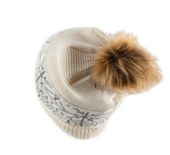 フランスで編まれたこのニット帽は、柔らかなウール、アクリル、ルレックスのブレンドで北欧風のルックとコクーニングの精神を提供します。グラフィックな模様が立体感を与え、わずかに輝く糸が全体をさりげなく照らします。フェイクファーのポンポンがエレガントで暖かいタッチを加え、寒い季節にぴったりです。