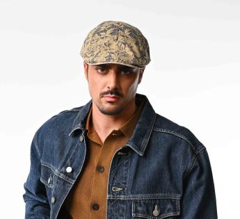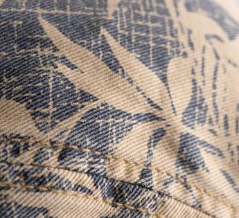 ベージュ地にブルーの植物柄が映えるダックビルは、エキゾチックな雰囲気と、洗練されたフレッシュなグラフィックのアクセントが魅力です。