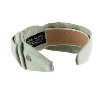 アトリエで仕立てられたこのヘッドジュエリーは、ヘアバンドとターバンの絶妙なバランスを叶えます。サイドにさりげなくアシンメトリーなリネンのダブルツイストノットが、堅苦しさのない独自のエレガンスを演出。