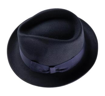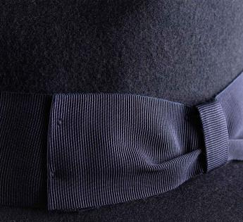 短いつばとわずかに高めのクラウンを持つこの中折れハットは、ラインを崩すために横に傾けたり、後ろに傾けて着用するのが楽しみです。平らな結び目で仕上げられたグログランのブレードが、モデルのフォーマルな精神を強調しています。