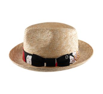 多彩な表情を持つハットは、夏の光とともに舞い踊ります。植物モチーフのリボンが、抽象的でコントラストの効いたカラフルなデザインを引き立てます。